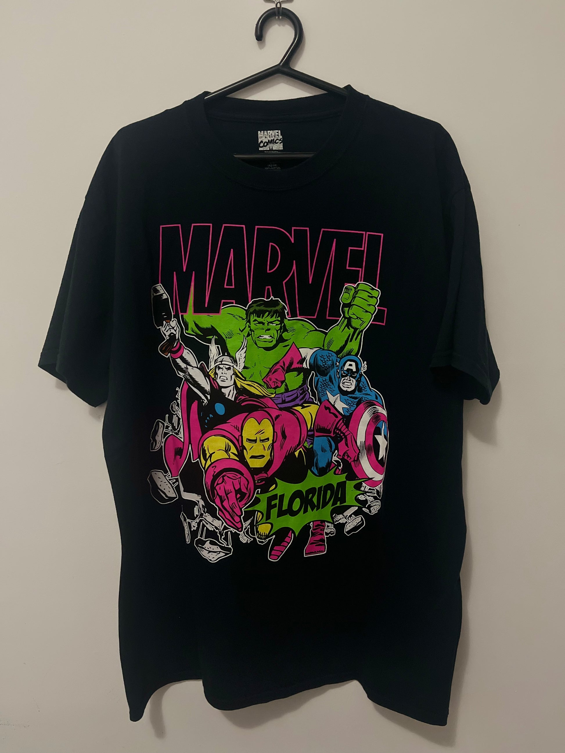 Detalhe: Camiseta estampada dos Vingadores, comprada no parque de diversão da Universal (Florida). Nunca foi usada.