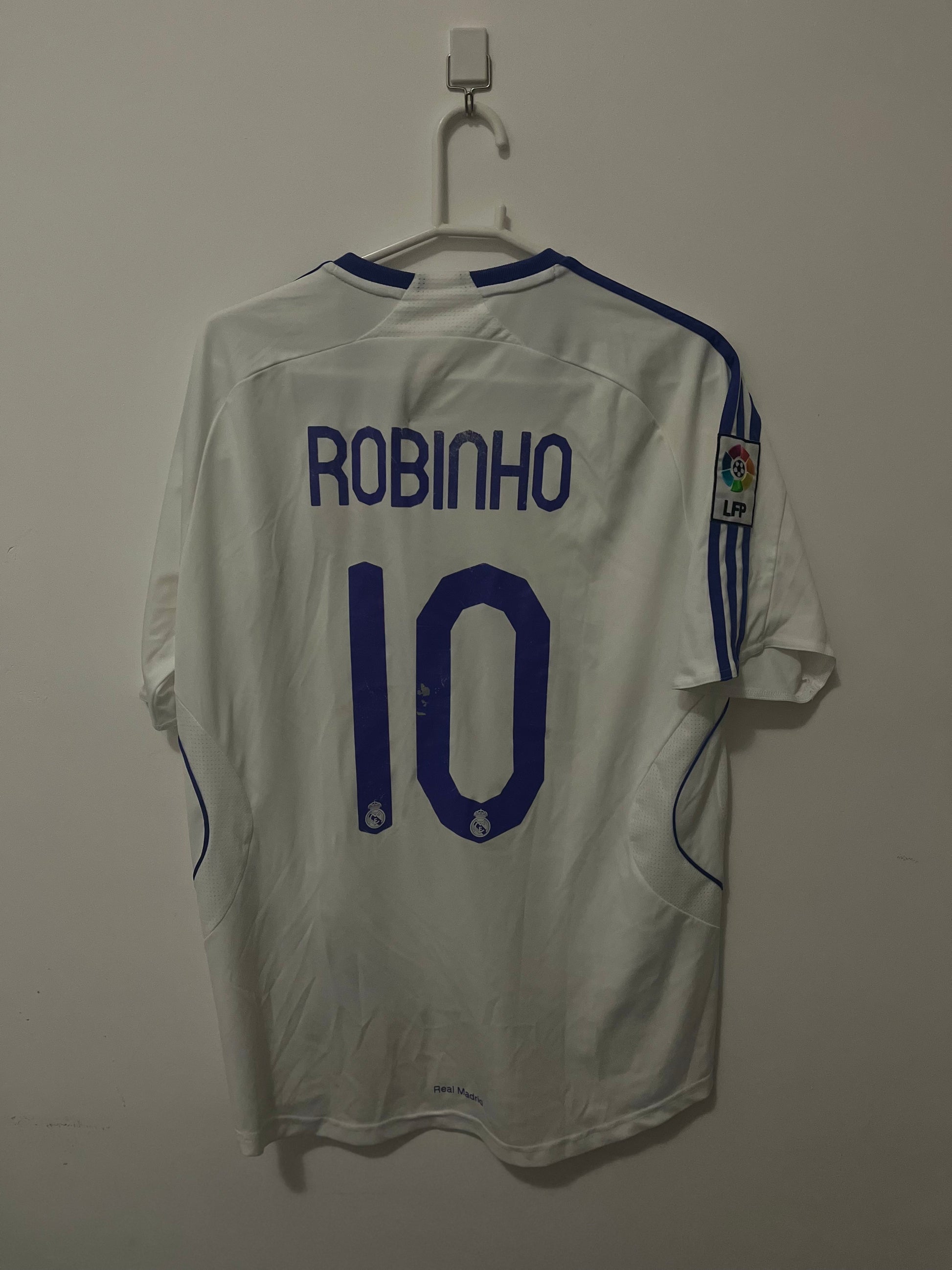 Detalhe: Camisa da chegada de RObinho ao Real Madrid, comprada no Santiago Bernabeu. Com patch da La liga