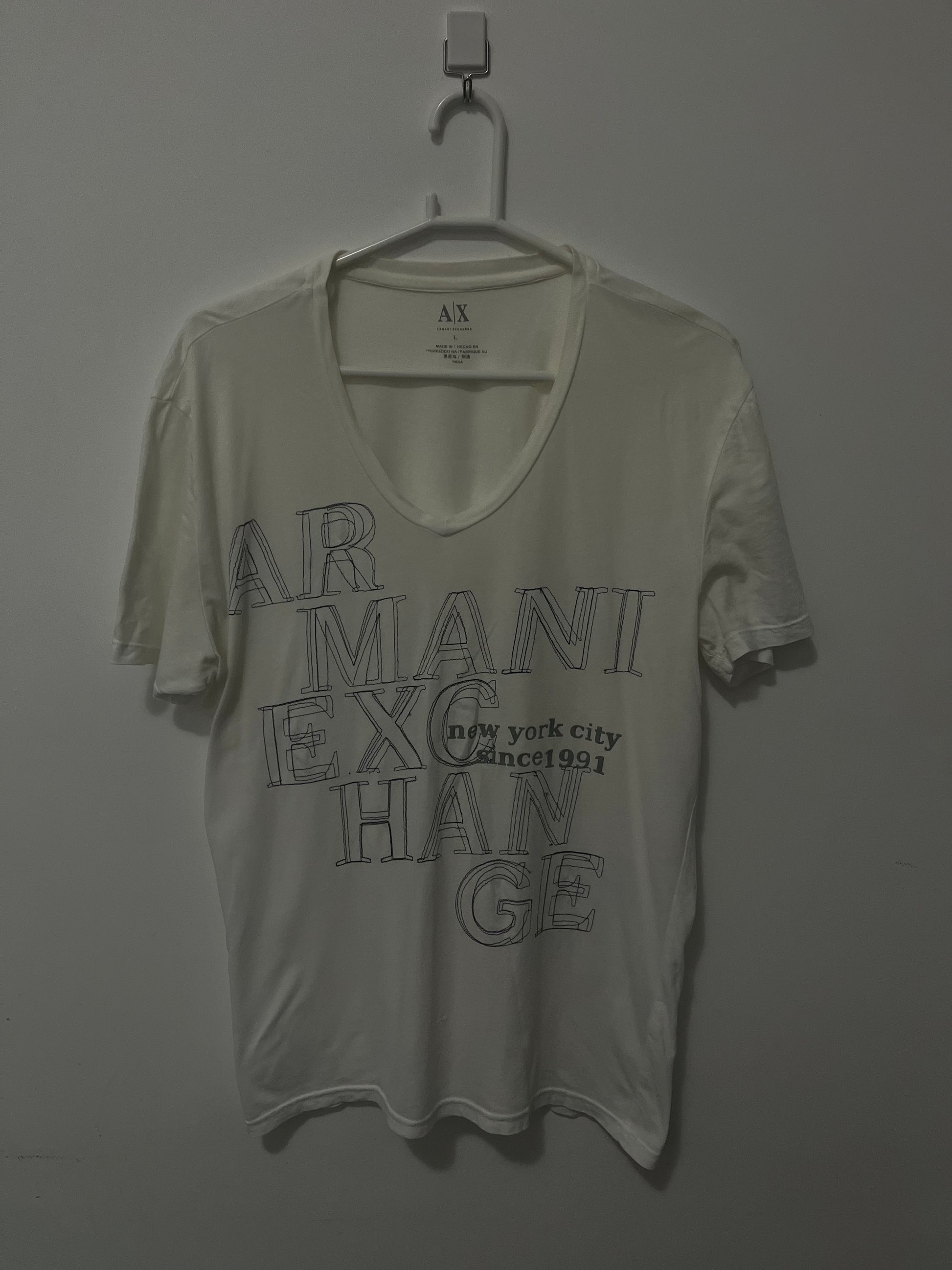 Detalhe: Camiseta Armani, com logo costurado, gola V. Ideal para sair com estilo.